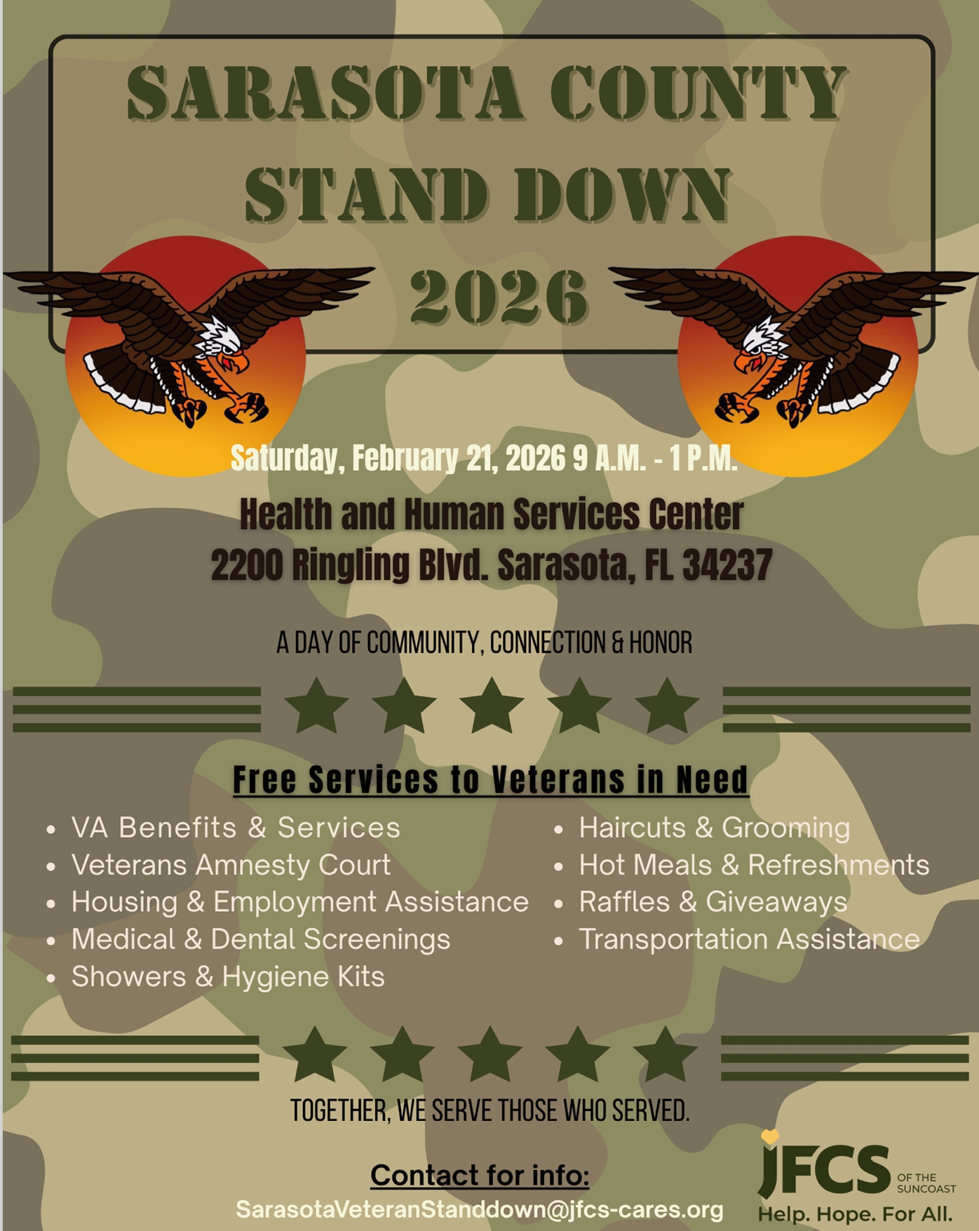 • Email sarasotaveteranstandown@jfcs-cares.org